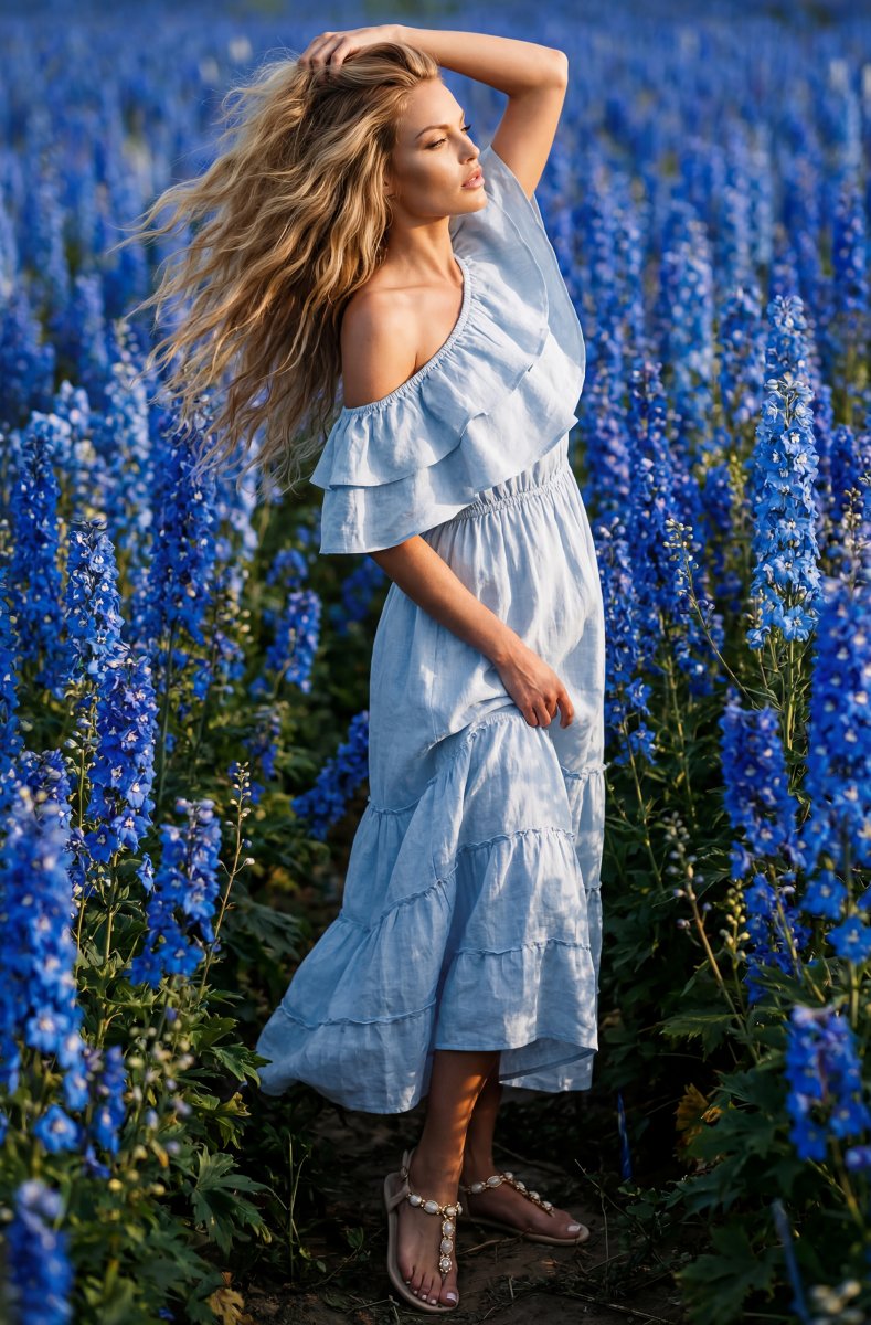 Amazing offshoulder dress in 100% linen. Made in Italy and absolutely gorgeous. Maxi dress that is perfect for summer
