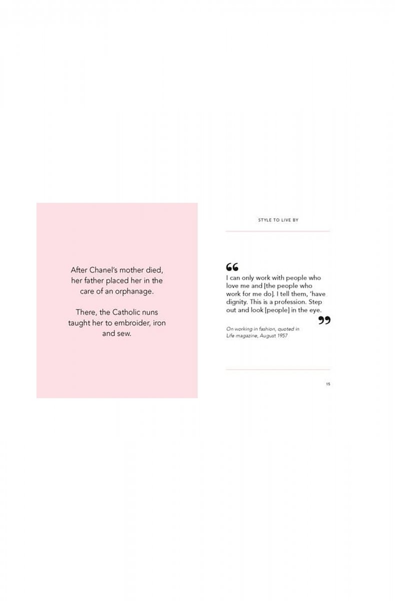 Almost 50 years after her death, Coco Chanel remains one of the world’s most influential fashion designers. Her story is one of creative brilliance and innovation – she was a driving force in freeing women from the restrictive clothing they had been obliged to wear for generations. ‘In order to be irreplaceable, one must always be different,’ Chanel would say, and throughout her life she demonstrated extraordinary passion and determination to change the world around her. There is much wisdom to glean from Chanel’s self-reflections, while her sharp wit and joie de vivre will amuse, surprise and inspire in equal measure.