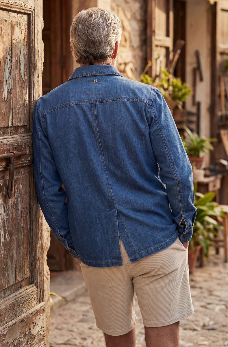 Denim overshirt with four pockets and buttons. Made from premium fabric in factories specializing in high-end garments for a relaxed yet luxurious look.
