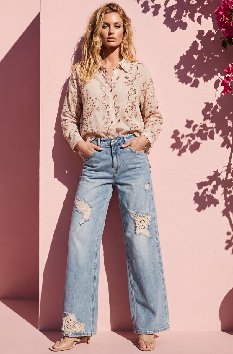 Beautiful blouse in the most comfortable silk/viscose mix. So pretty with cherry blossoms all over the blouse - luxuriously beautiful.