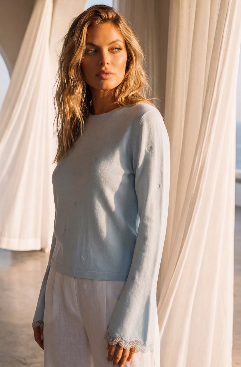 Lovely sweater with bell sleeves.