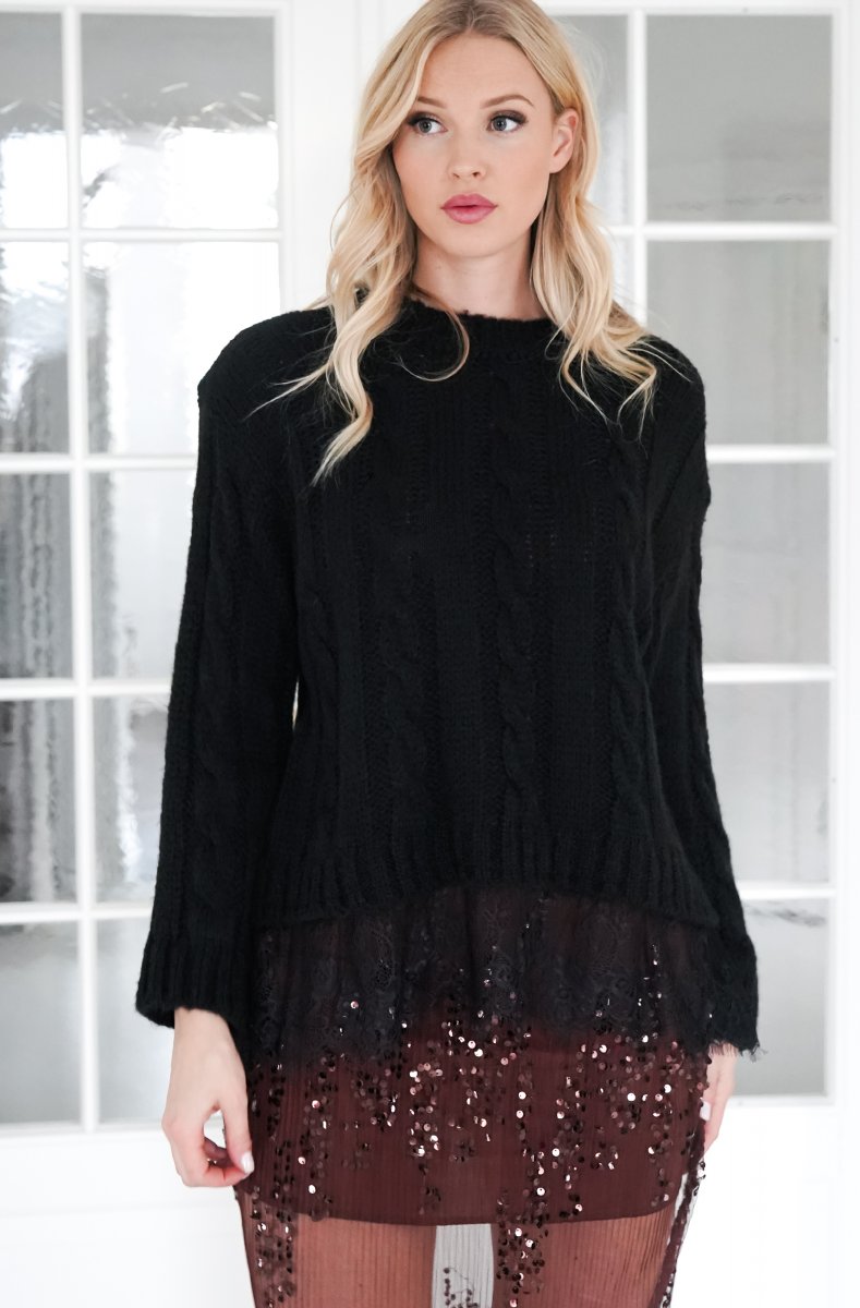 Love this sweater - cable knitted with lace trim!