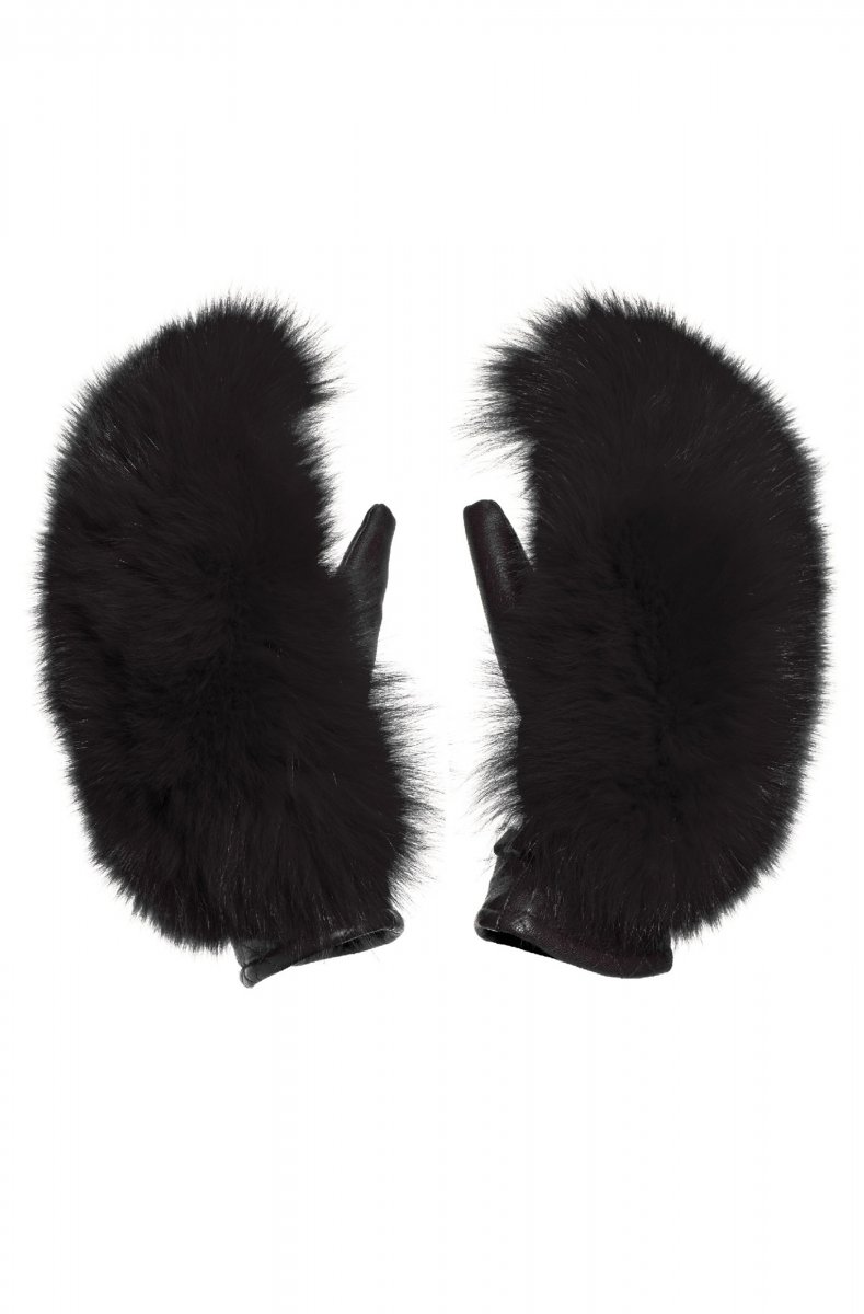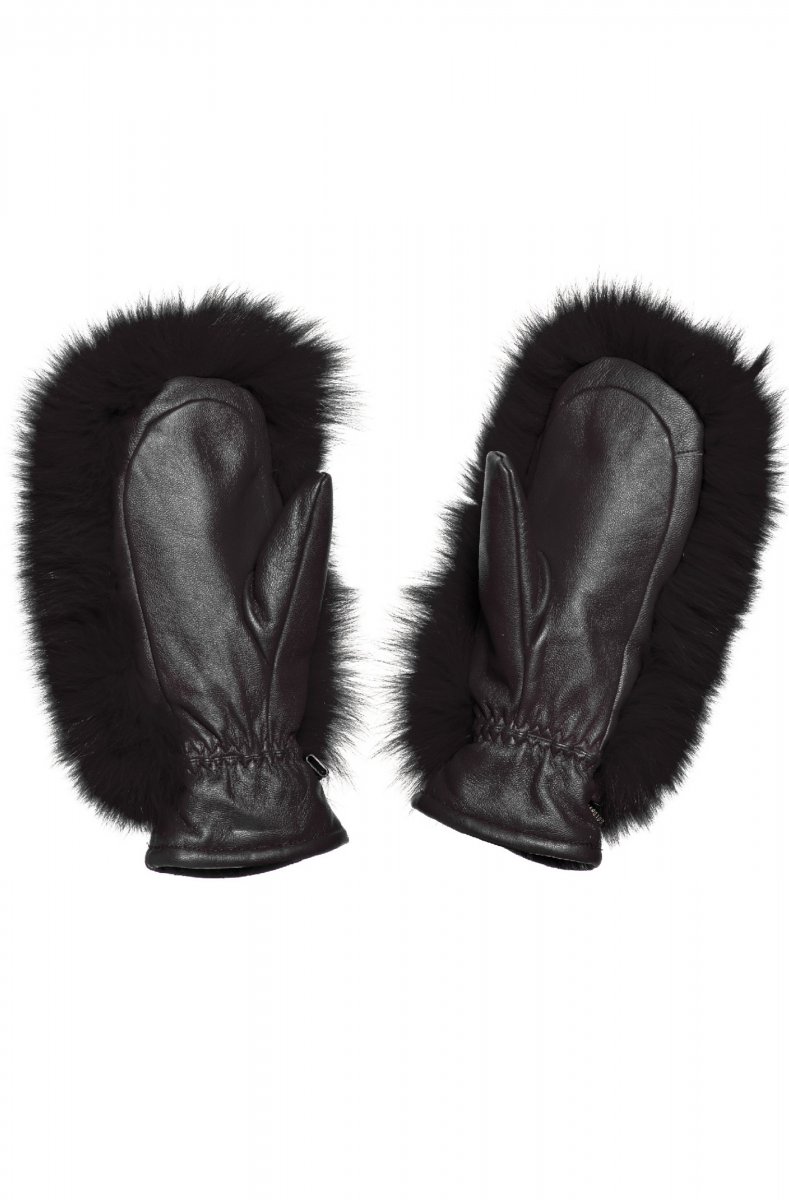 Vegan leather mittens with faux fur top