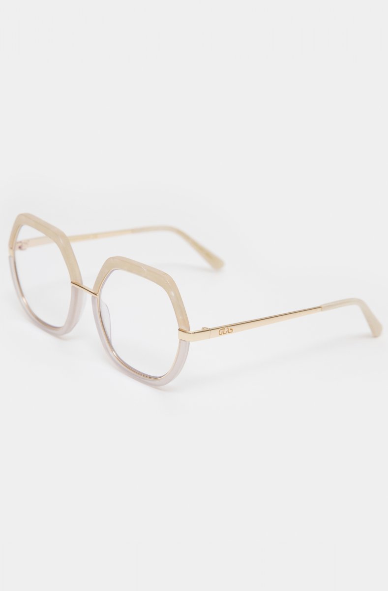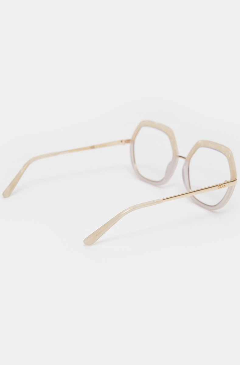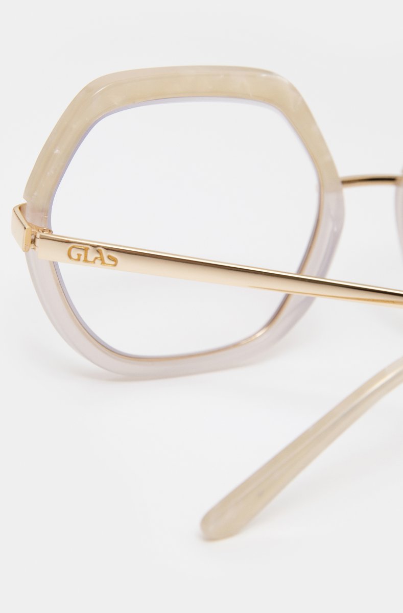 Marlene is a limited edition pentagonal frame in two-tone acetate and gold metal hardware. This decadent design lets you add a fun statement twist to your look, and is perfect for party season and beyond.