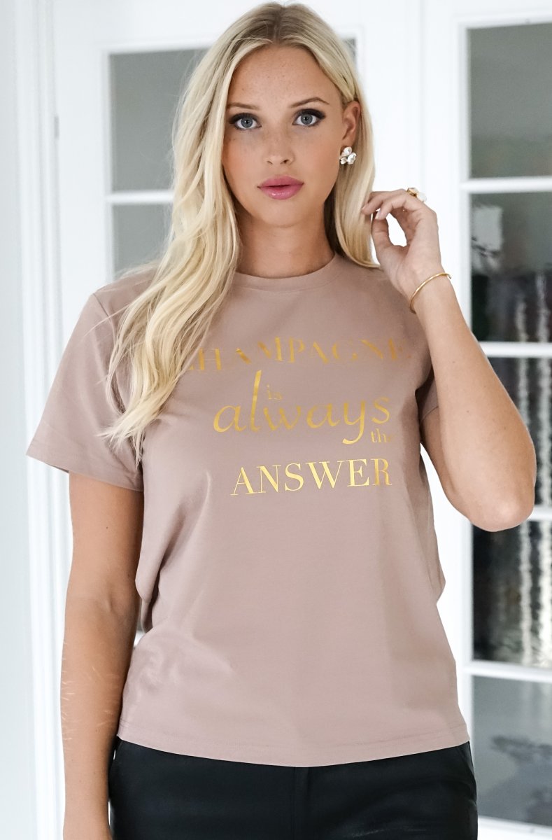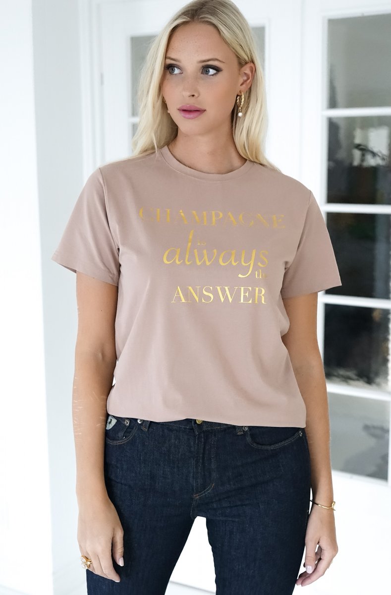 Love this t-shirt from Blond Hour with Champagne is Always the Answer printed at the chest! Amazing quality and looks great with both jeans/pants or a skirt!