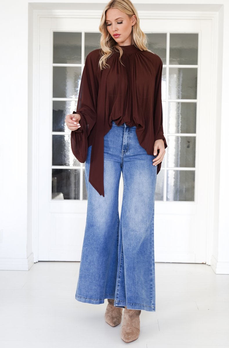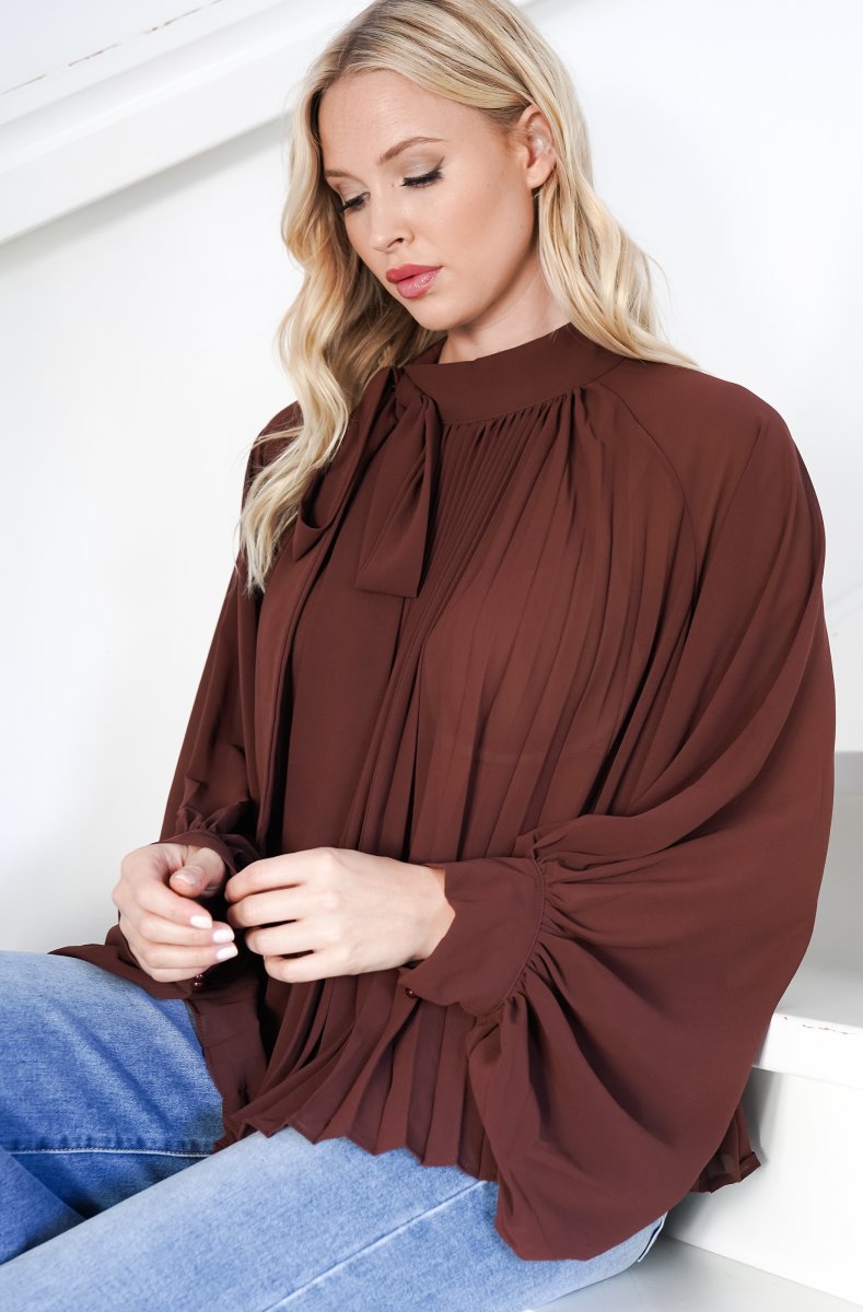 Item ID: w-mixed-brands-plisse-blouse-24037-choco