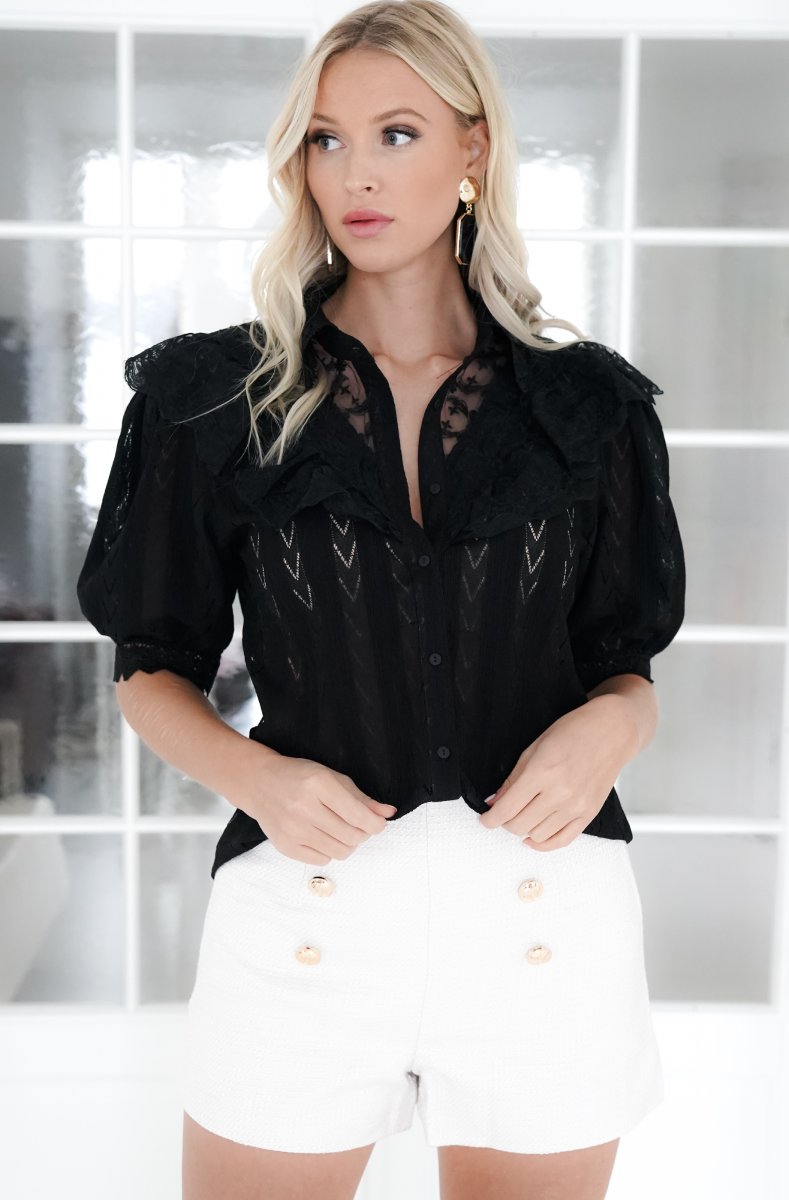 Mixed Brands - Short sleeve blouse with lace 9631-3310 - Black