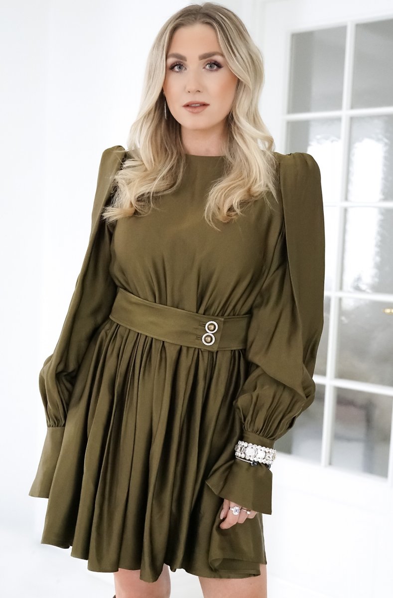 An exclusive dress with marked waist, flouncy skirt and sophisticated details. It's the perfect Custommade piece for all occasions.