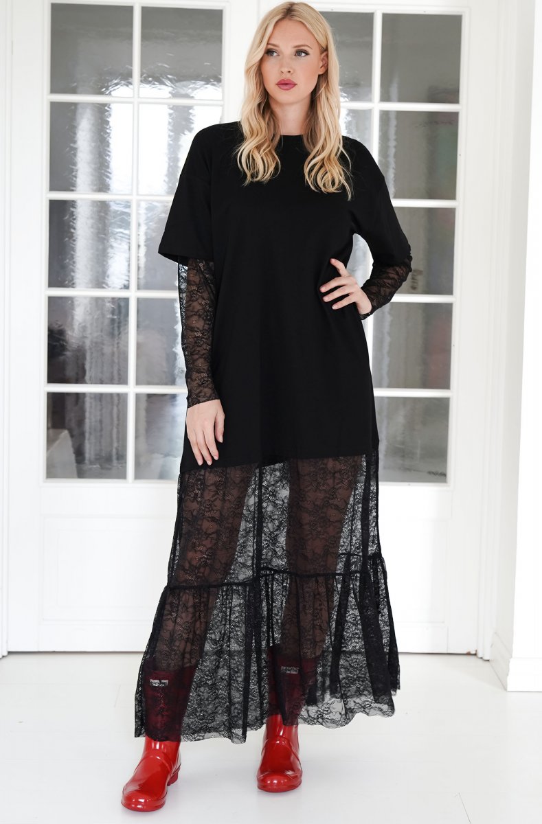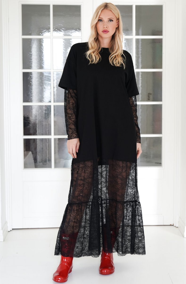 Love this casual tshirt dress. An oversized model that is perfect for everyday wear - and we love the pretty lace details