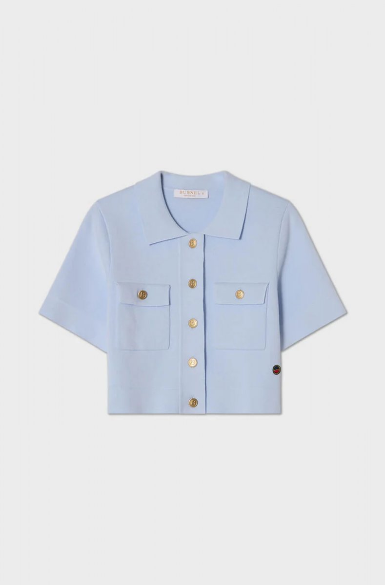 Valery Jacket is a short, cropped top detailed with five golden B-buttons at front and two pockets with one golden B-button. It has a classic collar and short sleeves. Team up with a pair of high waisted pants or skirt.