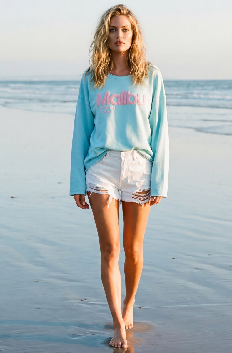 Love this sweater with Malibu at the chest in terry cloth! One size and fits up to XL