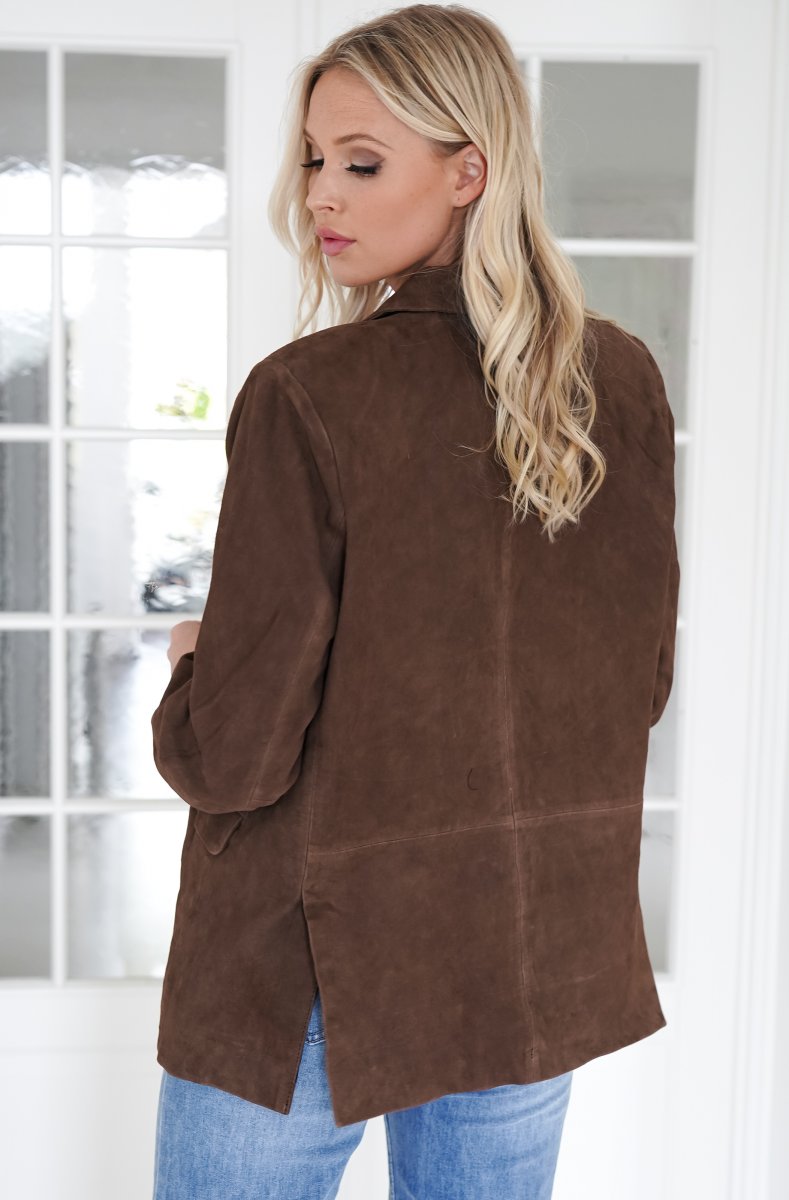 Soft goat suede blazer with satin lining.