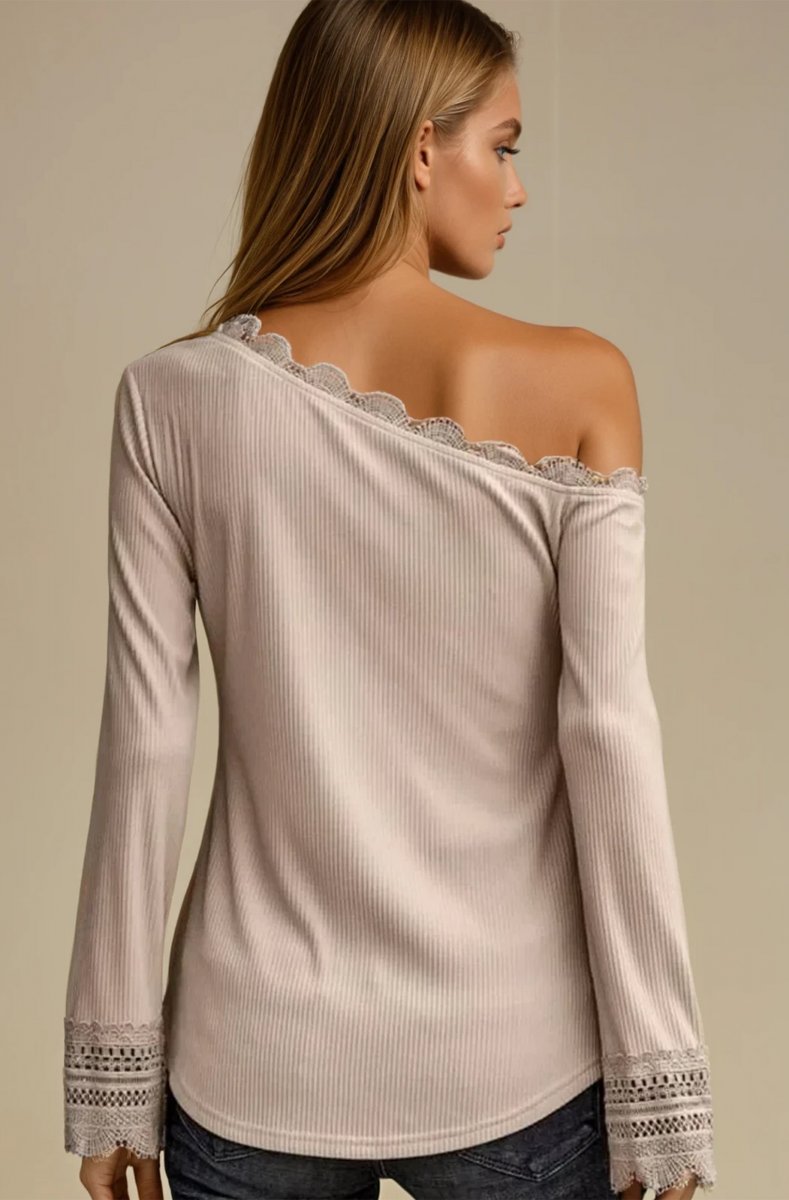 Pretty asymmetrical top with lace trims at sleeve