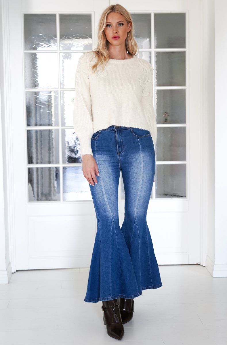 Just the coolest bellbottom jeans - perfect blue color and they are just amazing