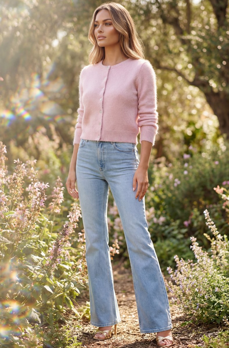 Wrap yourself in soft luxury with this beautiful angora cardigan in the romantic shade Blush. The silky, fluffy texture gives an exclusive feel while providing just the right amount of warmth – perfect for year-round wear. The classic button-down front makes it just as lovely worn closed as it is styled open over a dress, top, or shirt.
