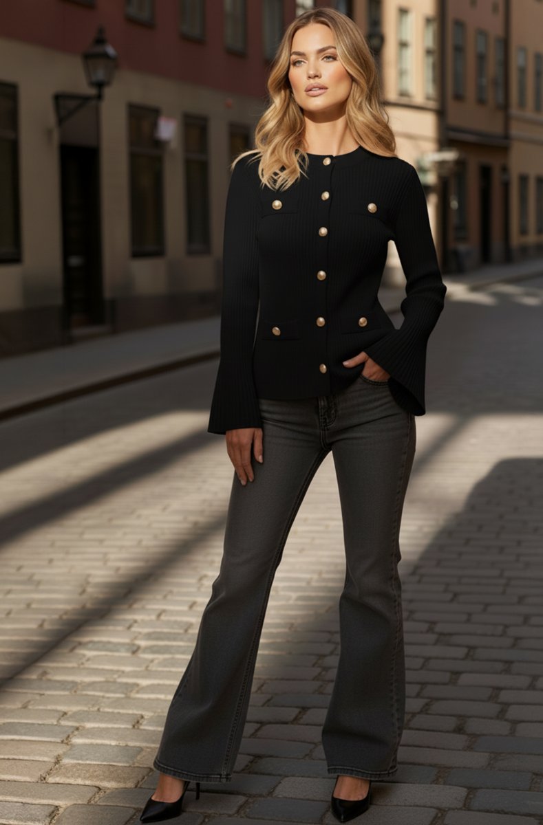 Gorgeous cardigan with trumpetsleeve and pretty buttons