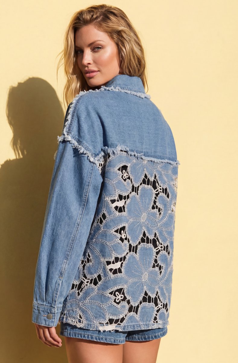 Fantastic spring jacket in denim with beautiful cut-out details! Such nice raw edges
