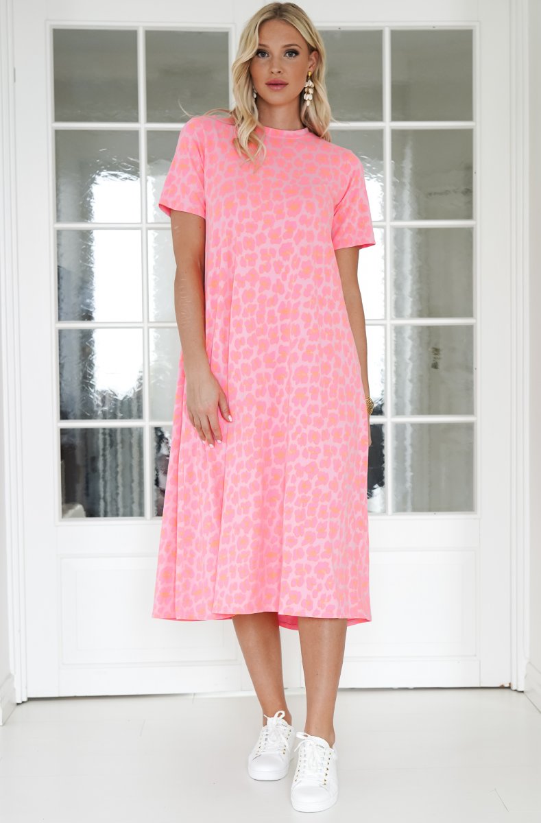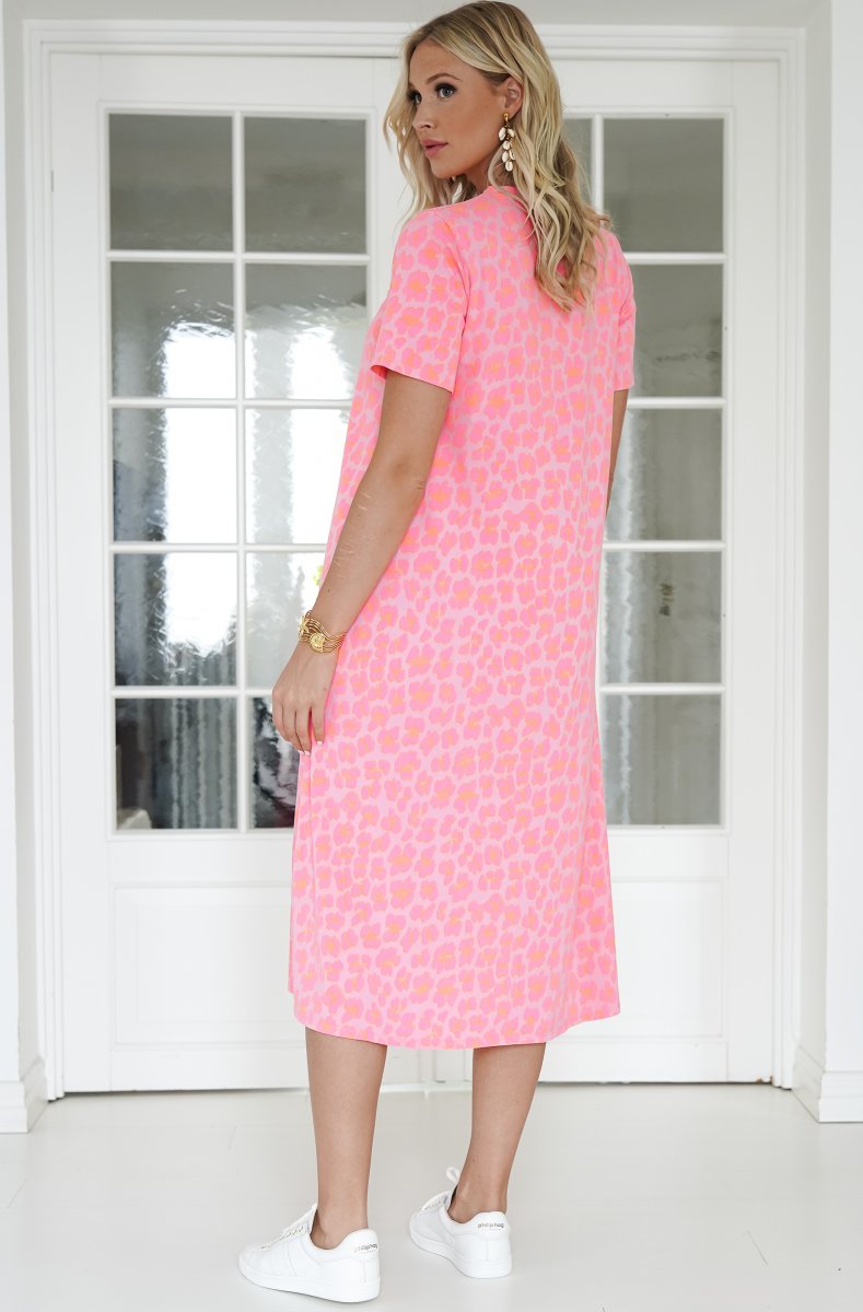 Leopard round neck dress in Italian cotton, perfect for spring evenings.