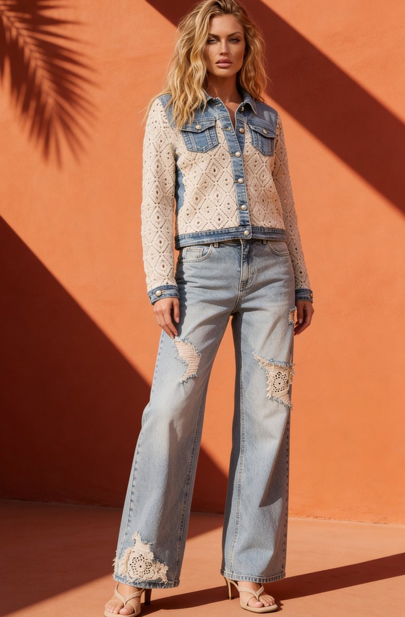 Super cute summer jeans with beautiful crochet details.