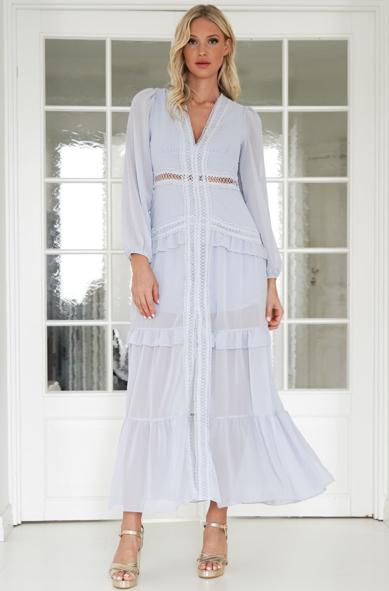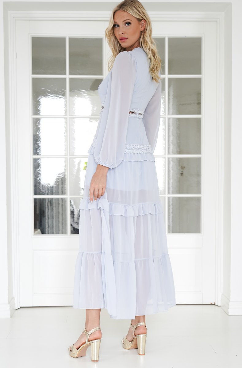 Elegant long dress, perfect for spring/summer, made of polyester (95%) and elastane (5%), breathable and stretchy, designed in China.