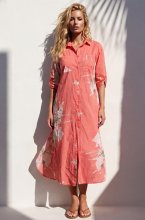 Midi shirt dress in lightweight fabric, featuring a classic collar, front button closure, and a soft line that naturally follows the body's shape. The floral print with a deliacte watercolour effect gives the garment a fresh and feminine elegance, perfect for the summer season. The chest patch pockets and adjustable sleeves with cuffs add practicality and make the model versatile for different times of the day. Ideal to pair with sandals, sneakers, or espadrilles for a casual-chich look in the city, on vacation, or during leisure time. One size and fits up to L/XL.