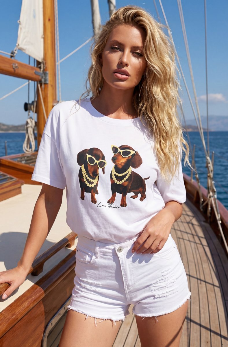 So nice and trendy t-shirt with dachshunds on it - which has a choker necklace with pearls! Love it! One size fits up to L/XL.
