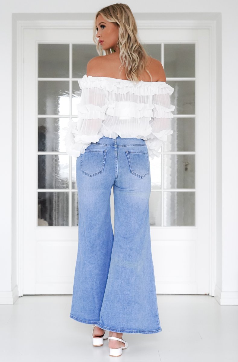 Flare jeans iin light blue denim. Amazing fit