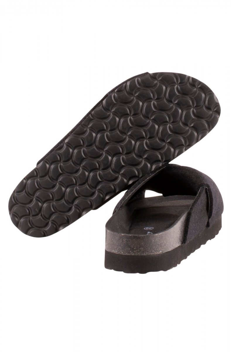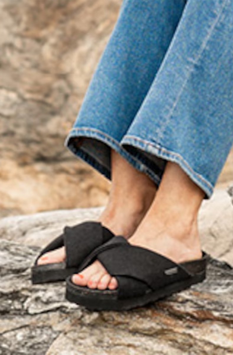Shepherd Freja. A pair of open sandals in wool with cross-over straps. The foot-shaped cork sole is covered in suede to help the sandals breathe naturally. EVA outer sole for a light and cushioned sandal.