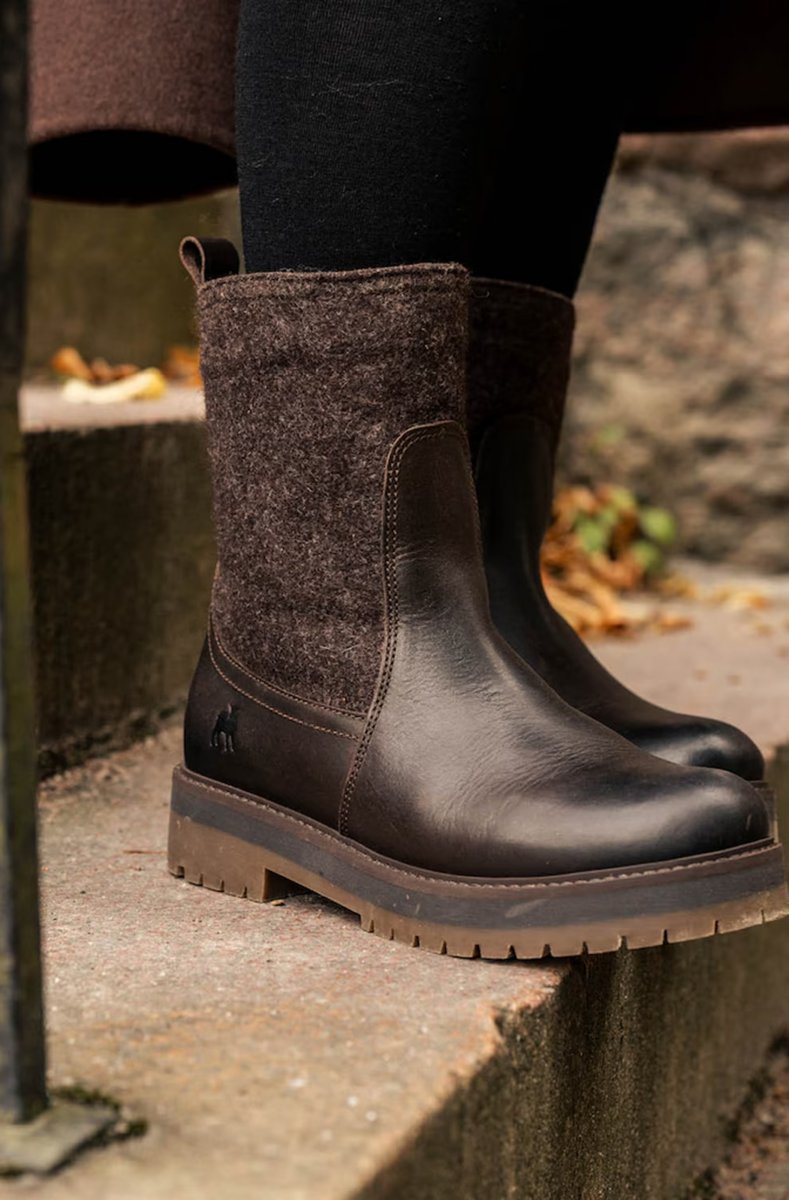 Shepherd Shirly is a pair of elegant, practical boots made from natural materials. The combination of wool and supple leather creates a clean and timeless look that works effortlessly for both weekday and weekend wear.