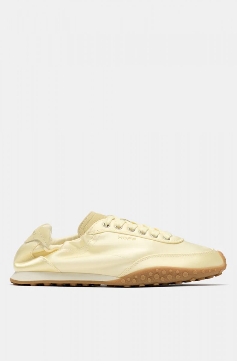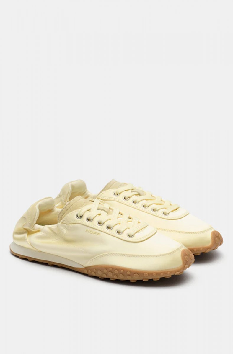 Monochrome sneaker made of satin and leather. Back with logo detail and ruched elastic for a better fit. Textured sole. Tone-on-tone lace-up fastening. Sole height: 1.5 cm.